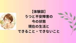 うつや不安障害で仕事が続かないと悩んでいませんか?何度も仕事を辞めてしまった私の体験をもとに、続かなかった理由や感じていたこと、少し楽になった考え方について書いています。